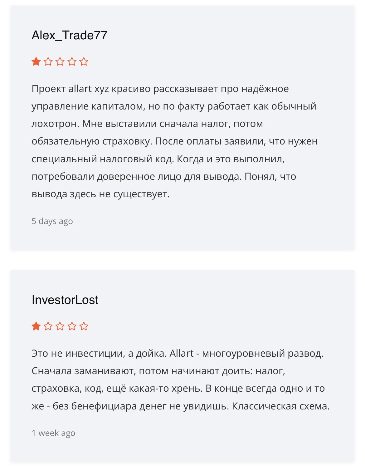 Анализ независимых площадок и форумов показывает превалирующее количество отрицательных отзывов на Allart.