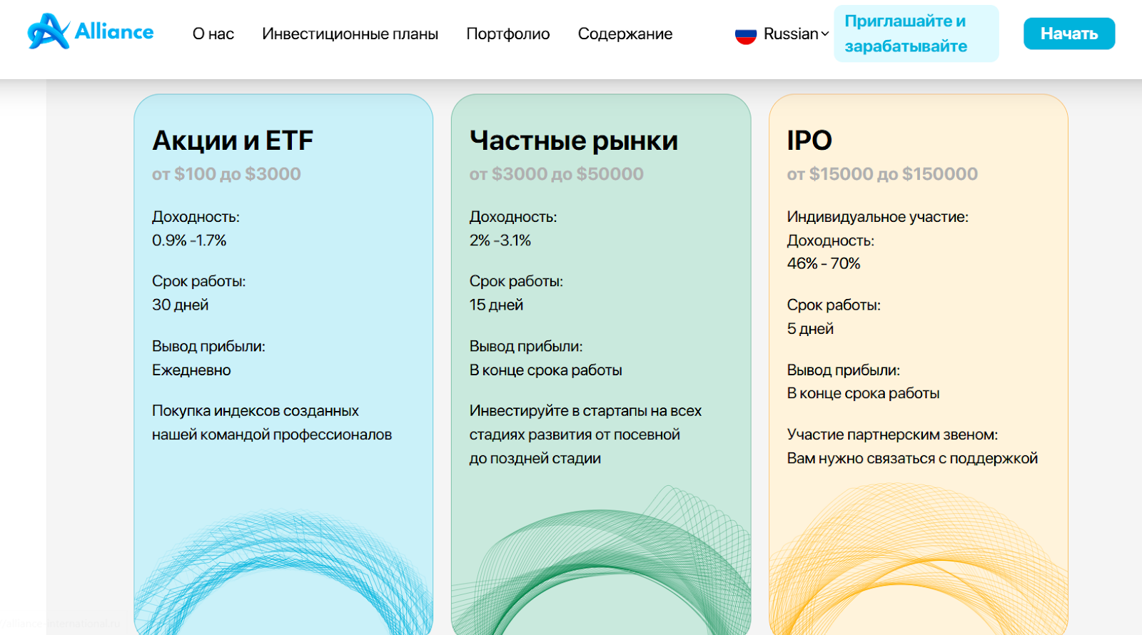 Alliance International Ru – это проект, который заявляет о себе как о проводнике в финансовый мир. Он предлагает доступ к акциям, венчурным инвестициям и IPO с доходностью до 70% за 5 дней. Но за этими заявлениями скрывается схема мошенничества. В этой статье мы разберем лицензии и отзывов пользователей.