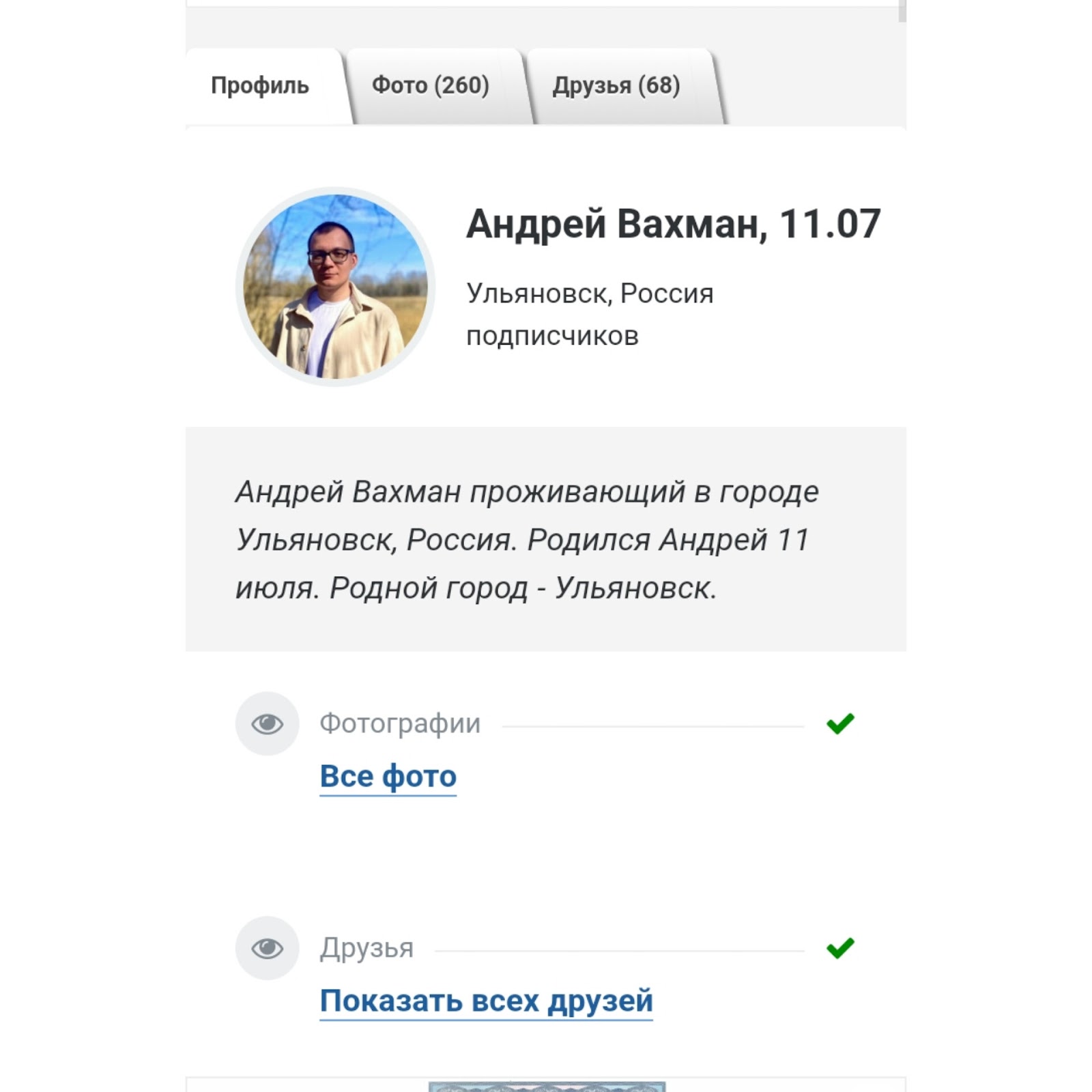 Главная информация о деятельности Андрея