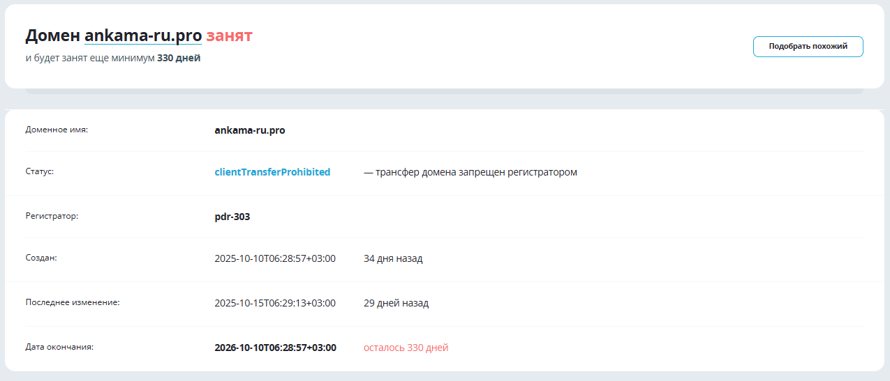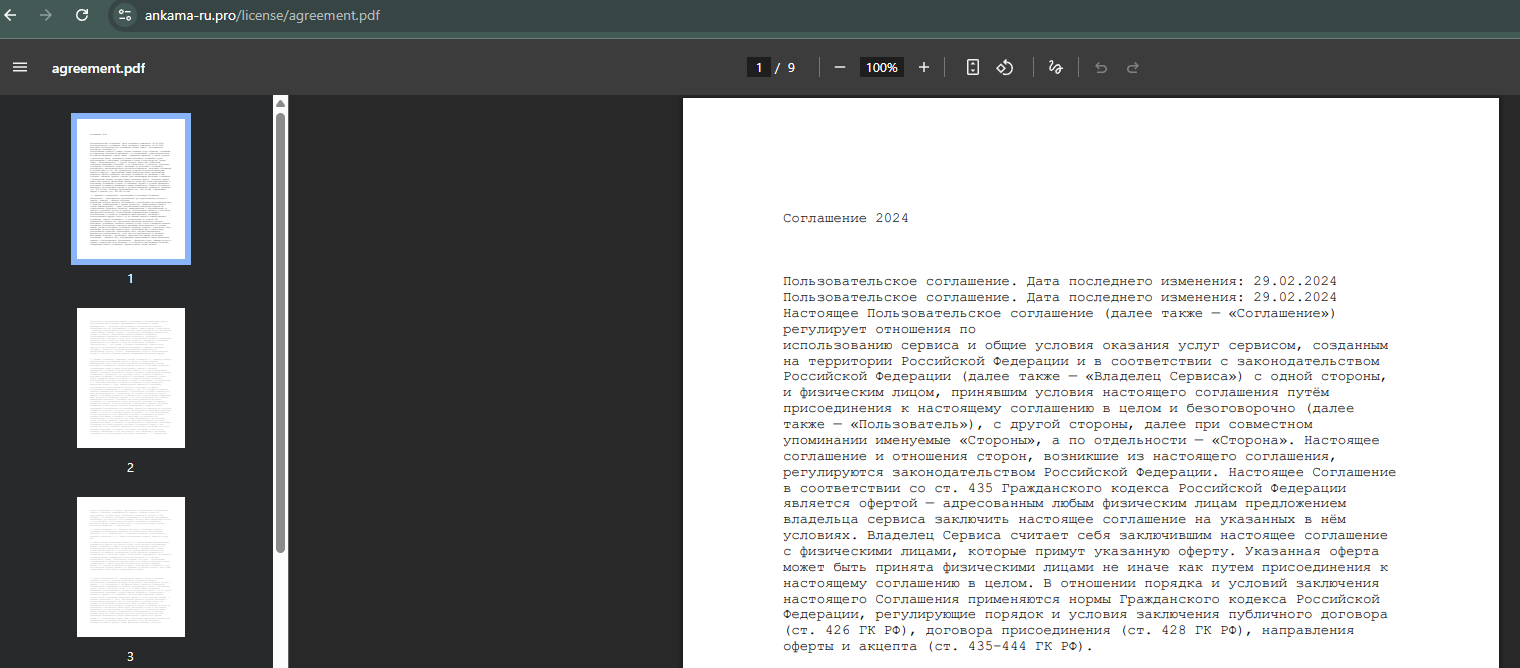 В единственном документе, представленном на сайте, мы нашли дату от 2024 года – это странно, поскольку домен был получен в октябре 2025 года. Он используется на протяжении 34 дней, о других адресах компании ничего не сообщается, в разделах они не фигурируют, поэтому мы сделали вывод о том, что организация недавно вышла на рынок.