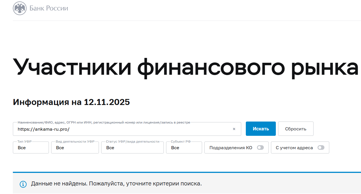 Мы заметили, что в тексте используются российские законы и описание правил с учетом местного регламента, а это говорит о желании создателей компании работать в РФ. Поэтому мы проверили Ankama ru pro в реестре участников финансового рынка, но не обнаружили никаких соответствий – у проекта нет лицензии.