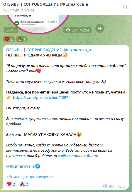 Пользователи якобы благодарят здесь автора за изменение жизни. Они показывают скриншоты денежных переводов и рассказывают о внезапном богатстве. Однако про Анну Кузьмарову все отзывы выглядят крайне однотипно и вызывают сомнения в своей естественности. В них полностью отсутствуют детали учебного процесса или описание трудностей, с которыми неизбежно сталкивается любой новичок.