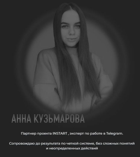 Основная легенда гласит, что любой человек, независимо от опыта и образования, может начать зарабатывать десятки и сотни тысяч рублей, просто следуя её методикам. Основные площадки для продвижения — Telegram-каналы и личный тг-аккаунт Анны Кузьмаровой, сайт-визитка на Taplink и другие социальные сети.