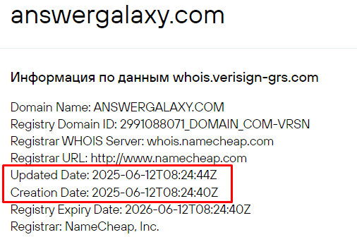 Доменное имя AnswerGalaxy Com зарегистрировано в июне 2025. Очевидно, в этот период состоялся перезапуск проекта. При возобновлении работы администрация сообщила об увеличении опросов, и ежедневно было доступно свыше 100 для россиян и жителей стран СНГ. Но на апрель 2026 опросник снова не открывается.