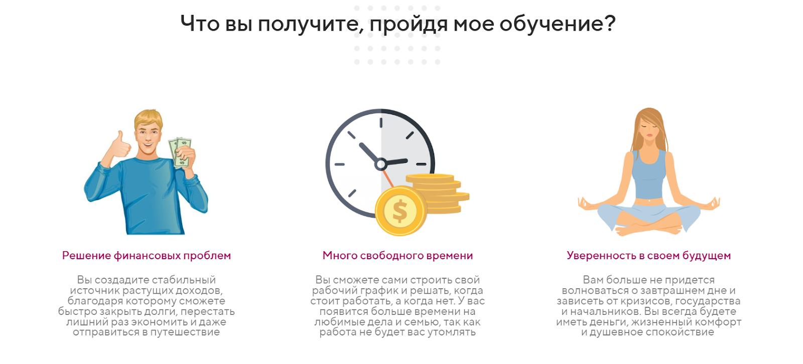 Заявляется, что автор работает в интернете в разных проектах с 2012 года и постоянно находит дополнительные способы заработка. Но фактических подтверждений этому нет, каки и отсутствуют доказательства, что автор заработал в 2017 году первый миллион, а сейчас такую сумму получает всего за несколько месяцев работы. Непонятно тогда, почему при таких заработках он занимается продажей курсов по менее 1 тысячи рублей.