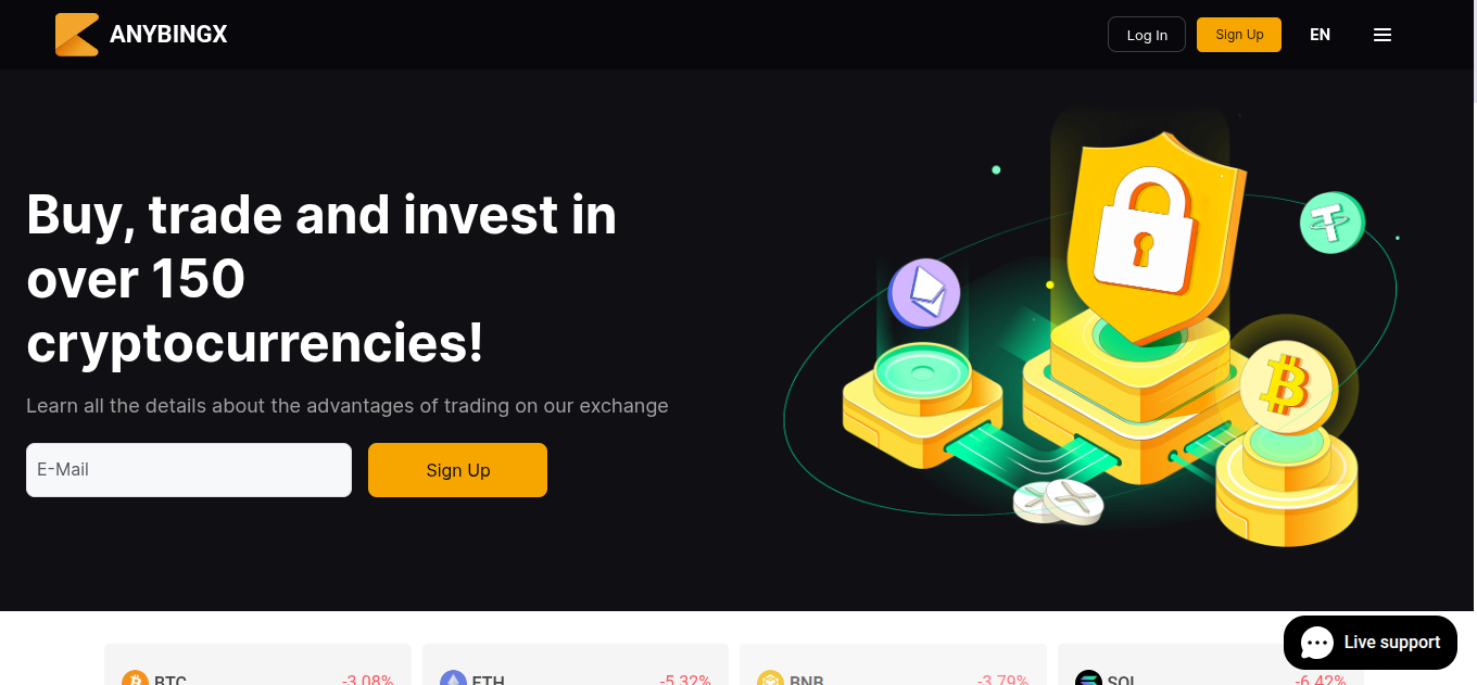 Anybingx — это не биржа, а цирк с клоунами: обещают 150+ криптовалют, а на деле — пустышка без лицензий и с фейковыми обещаниями.