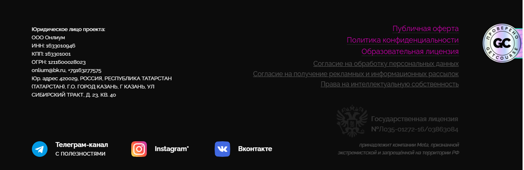 На сайте школы Onlium centr сказано, что она имеет государственную лицензию на осуществление образовательной деятельности. Услуги оказываются от лица ООО «Онлиум», все официальные реквизиты указаны на сайте школы. Юрлицо официально зарегистрировано в республике Татарстан. Это указывает на то, что если Анжела Шнайдерман и инфоцыган, то вернуть деньги за обучение возможно.
