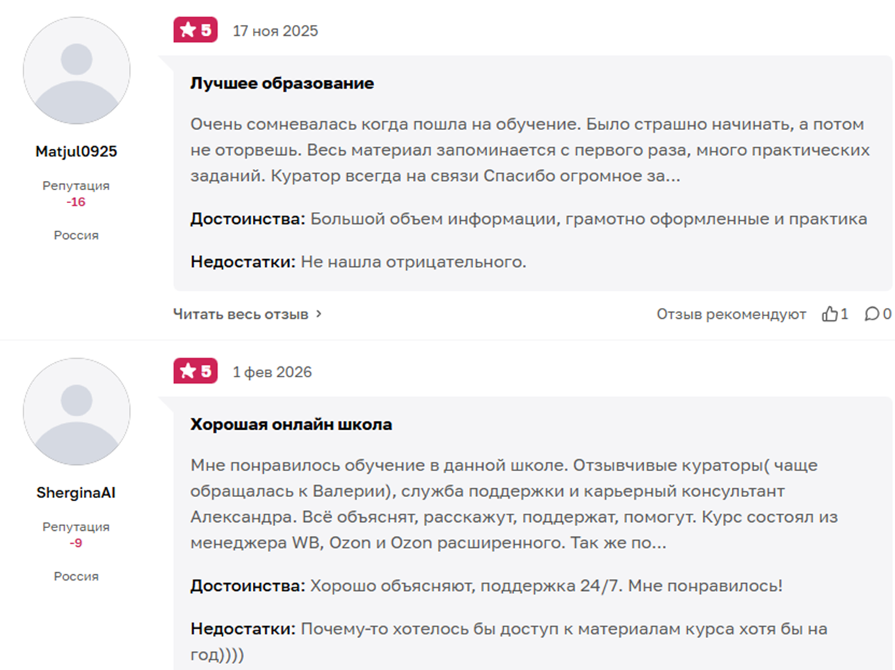 Следующим шагом стало создание успешной команды и основание школы «Онлиум», реальные отзывы на которую на форумах положительные. В школе готовят менеджеров маркетплейсов, которые уже в процессе обучения могут начать зарабатывать первые деньги.