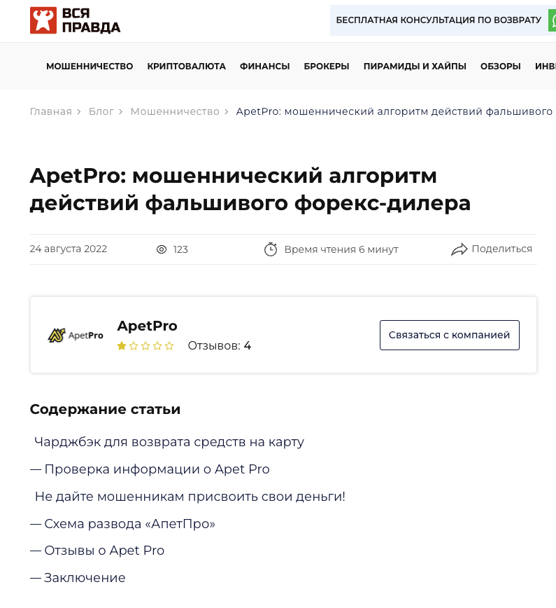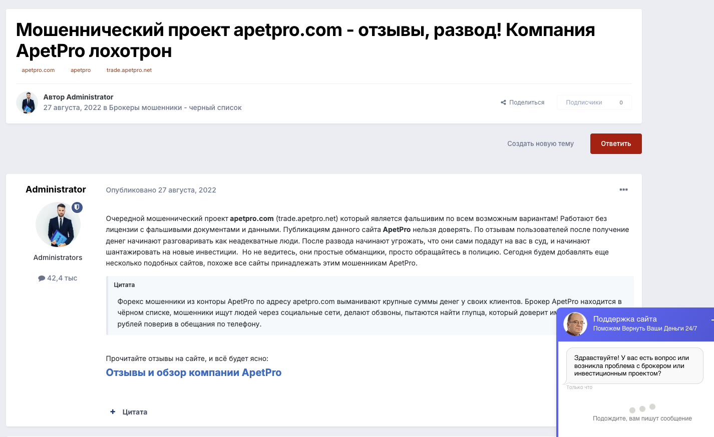 Проверка брокера ApetPro: отзывы клиентов, предложения сервиса АпетПро