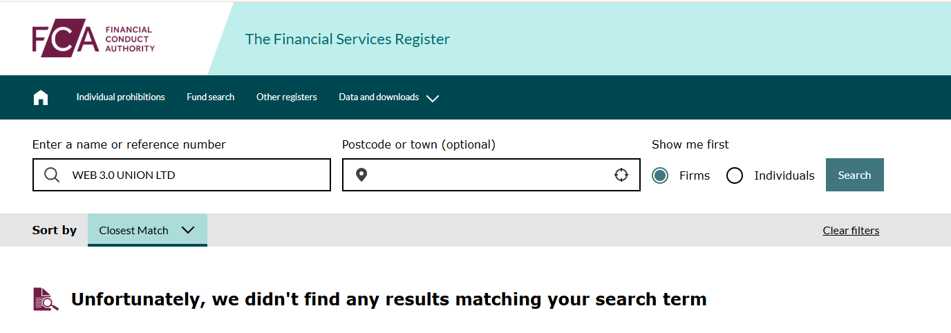 В политике конфиденциальности брокера размещена информация, что торговая платформа принадлежит компании WEB 3.0 UNION LTD, которая якобы действует на территории Великобритании. Собственно, это единственная действительно нужная и полезная информация на данной платформе. Мы проверили фирму в регистре английского регулятора, но не нашли ее там. Таким образом, лицензии у брокера явно нет.