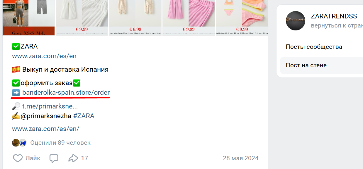 Для просмотра полного каталога ранее давалась ссылка banderolka-spain store – на момент обзора она нерабочая. На данном сайте предлагали выкуп и доставку одежды из Испании. Снежана якобы привозила брендовую одежду Zara и Primark. И снова таки – юридическая информация не презентуется и здесь.