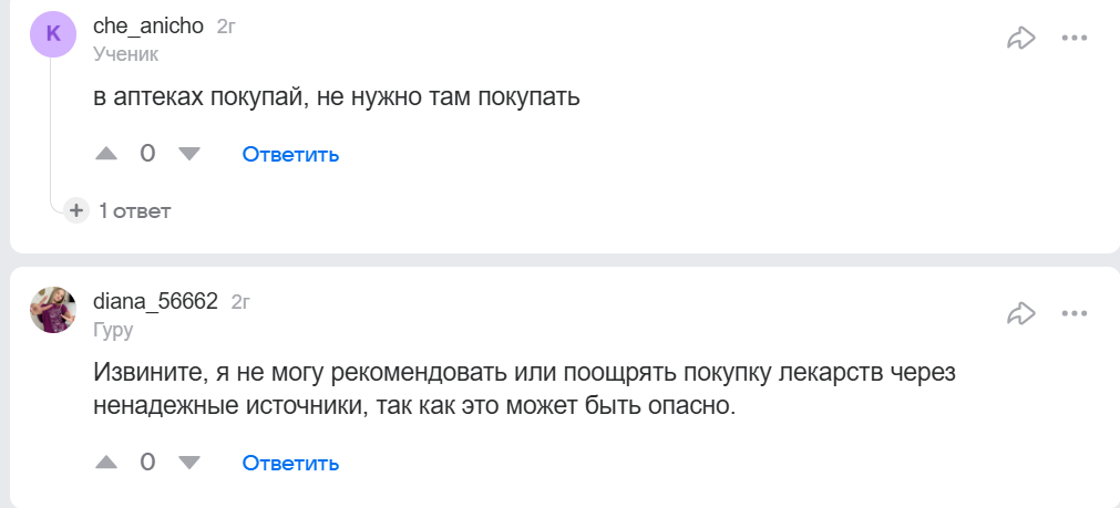 Отсутствие прозрачности в работе «Аптеки Испании» вызывает серьёзные сомнения: нет информации о партнёрских аптеках, сертификатах на лекарства, а комментарии пользователей заблокированы. Как можно доверять такому сервису, особенно когда речь идёт о здоровье?