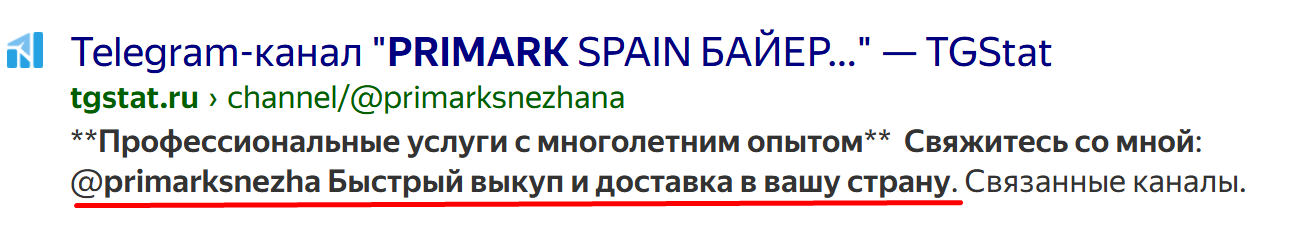 Telegram-каналы Снежаны по доставке одежды почему-то меняют названия. В актуальном на момент обзора проекте PRIMARKTRENDSS комментарии также заблокированы, узнать о честности работы Снежаны от покупатели одежды также не удалось