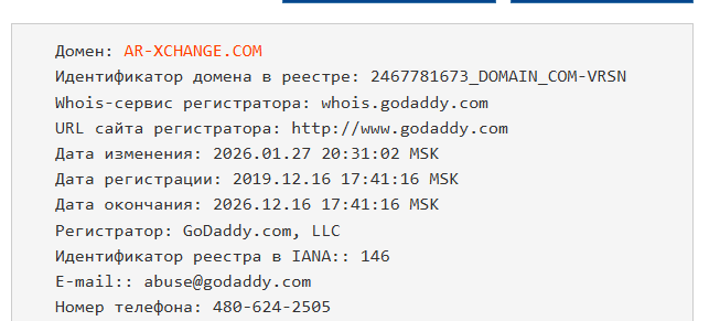 AR Xchange — это очередной пример того, как некомпетентность и отсутствие прозрачности приводят к провалу. Обещания быстрых транзакций и выгодных курсов оказались пустыми словами. Сайт, зарегистрированный в 2019 году, начал функционировать лишь в январе 2026 года, что вызывает серьезные сомнения в его надежности. Отсутствие информации о владельцах и юридических данных делает сотрудничество с этим сервисом крайне рискованным. Отзывы пользователей подтверждают проблемы с возвратом средств и требования дополнительных платежей при малейших ошибках. Рекомендую держаться подальше от AR Xchange и искать более надежные платформы для обмена криптовалют.