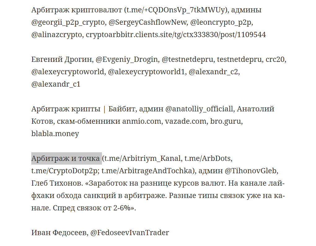 «Арбитраж и точка» – канал про арбитраж криптовалют. Его наполнение – связки и необходимая информация для желающих развиваться в этом направление. Мы решили разобраться, можно ли доверять админам и на чем такие группы зарабатывают на самом деле.