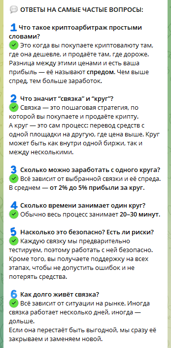 Проект Арбитраж Крипты Связки может быть потенциально опасным для работы. Подписчиков сообщества привлекают слишком высокой и просто прибылью. К основным моментам, которым стоит уделить внимание, мы отнесли: