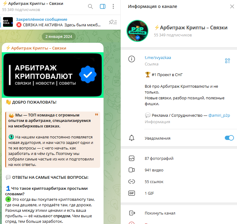 Арбитраж Крипты Связки (svyazkaa) – сообщество в Телеграм, посвященное методам заработка на криптовалютном арбитраже. Автором выступает некий Амир. Он заявляет, что может дать доступ к самым выгодным связкам. Проект еще не успел собрать отзывы в сети. Мы провели его проверку с целью определить, действительно ли безопасна работа с ним.