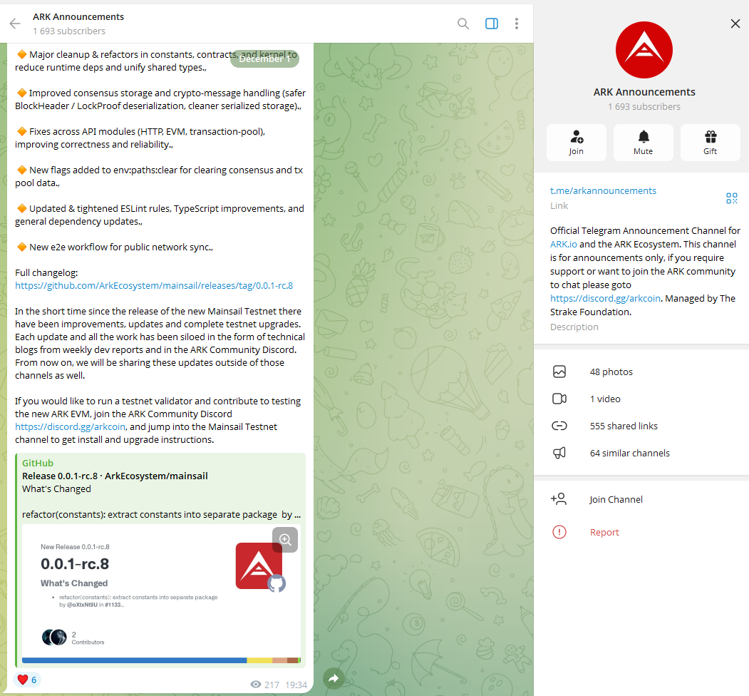 - Ark Public Network – публичная сеть проекта.