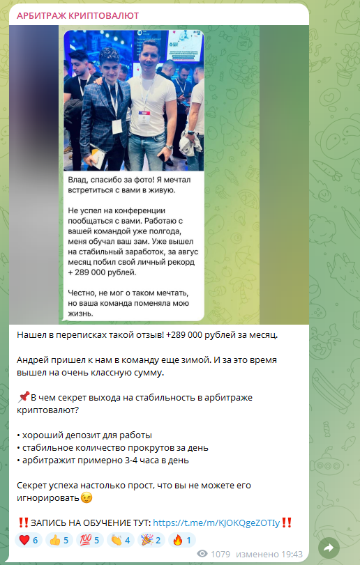 Неизвестно, когда именно был запущен бот Arte57bot, но указано, что он связан с неким Владиславом и его обучающим каналом «Арбитраж Криптовалют».