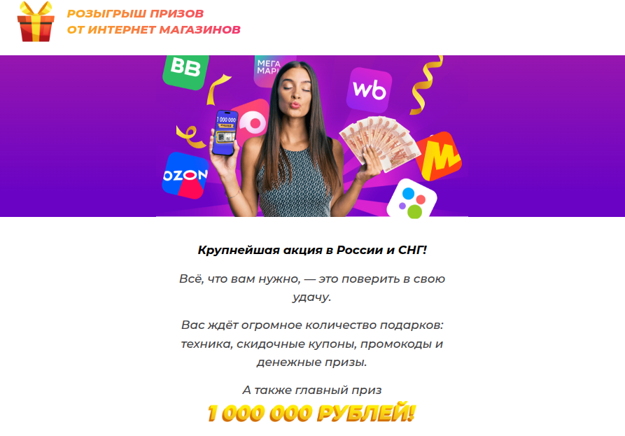 Поддельные страницы содержали яркую рекламу и обещали «подарки каждому». Использовались фото, сгенерированные нейросетью, чтобы создать иллюзию активности. Но все ссылки вели на мошеннические сайты: