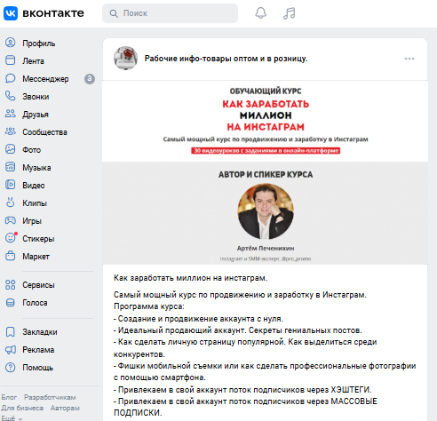 Артем Печенихин позиционирует себя как тренера по заработку через Instagram. Автор курса предлагает пользователям освоить якобы новые методики, которые, по его заверениям, способны привести к значительному доходу. Однако при детальном рассмотрении видны сомнительные приемы. Кроме того, не вызывает восторга как актуальность, так и глубина подаваемого материала.