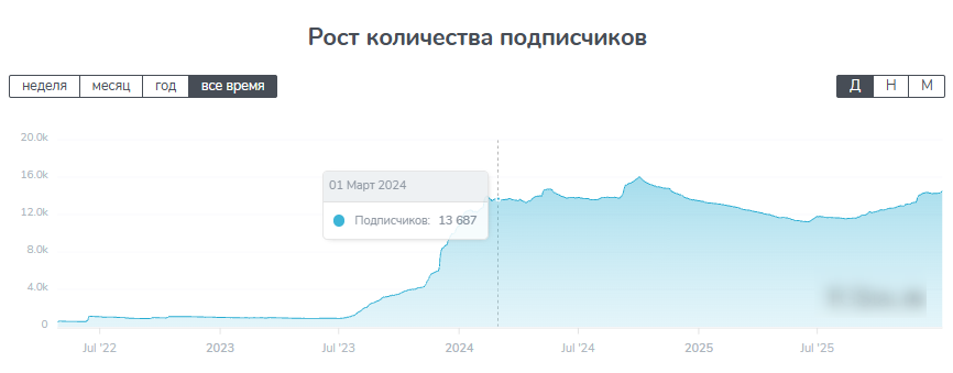 На графике не видно явных следов накрутки, при этом все в порядке и с показателем вовлеченности, поэтому можно судить об органичности трафика сообщества.