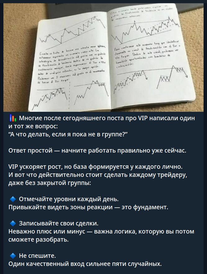 Очередной «гуру» трейдинга, скрывающий свою статистику и реальный опыт, заманивает в VIP-группу без гарантий. Похоже на очередной развод для новичков.