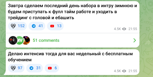 Ранее Артур торговал в команде. С ней тоже не все гладко: большая часть каналов его «коллег» закрыта и удалена из мессенджера.