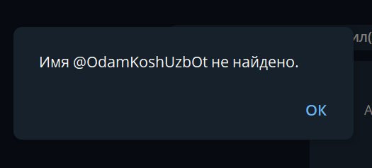 Обменник представлен в качестве бота в Телеграмм, но примеров интерфейса в сети нет, а в январе 2026 года изучить проект напрямую не получится, так как мессенджер пишет, что имя @OdamKoshUzbot не найдено.