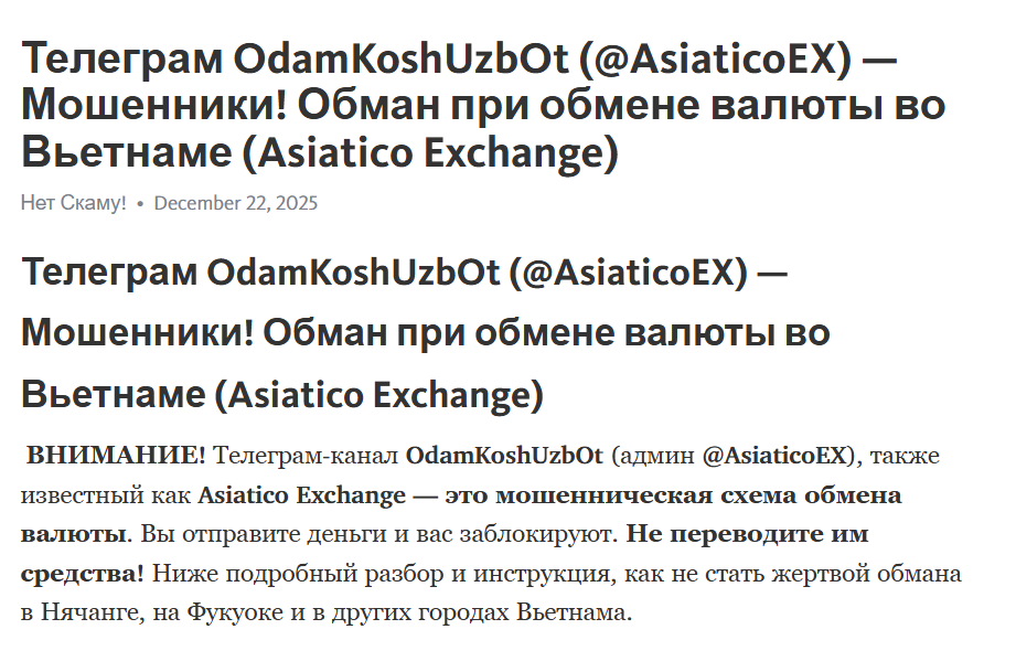 Обзор обменника Asiatico Exchange: отзывы о работе поддержки AsiaticoEx, проверка канала в Telegram OdamKoshUzbot и анализ деятельности «Асиатико Ексчейндж»