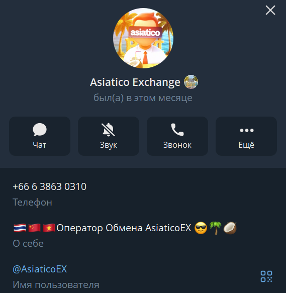 В описании профиля с ником AsiaticoEx указано, что он принадлежит оператору обмена, а также есть номер телефона, но код из Таиланда, а не Вьетнама.
