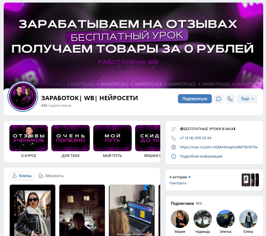 В ВК у Гутова есть сообщество ЗАРАБОТОК| WB| НЕЙРОСЕТИ. Там 456 подписчиков. Создано в апреле 2025 года. Это один из курсов, для получения уроков нужно написать в личку.