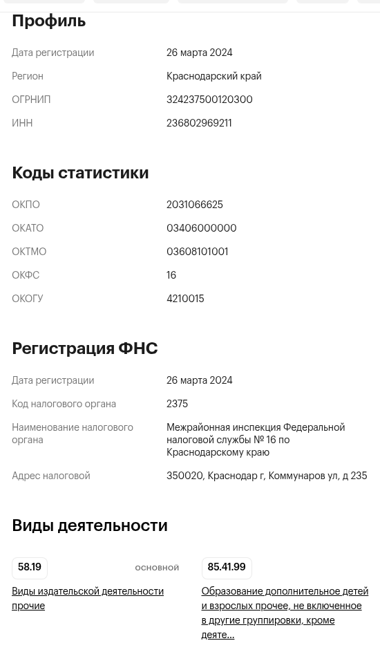 Аслан работает официально. Зарегистрирован как ИП Гутов А.А. ИНН 236802969211, ОГРНИП 324237500120300. Адрес: Краснодарский край, город Белореченск, улица Кочергина, д. 56. По этому адресу находится частный дом. Но регистрироваться как ИП по месту прописки или проживания — нормальная практика.