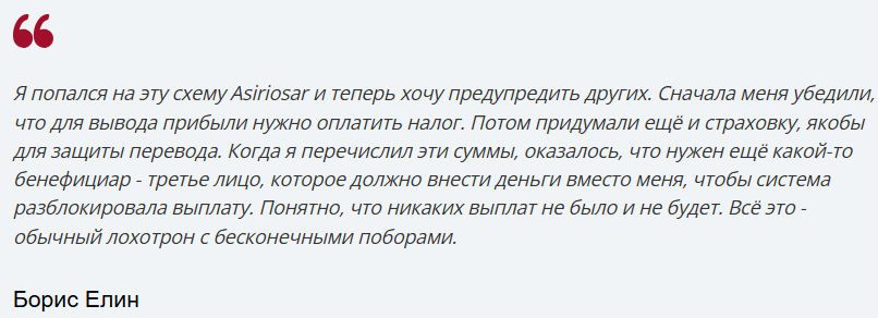 Брокер Asr osar: отзывы клиентов об услугах и проверка Asiriosar на честность