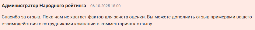 Но администрация портала «Банки Ру» не сочла положительный отзыв пользователя действительным ввиду отсутствия доказательств.