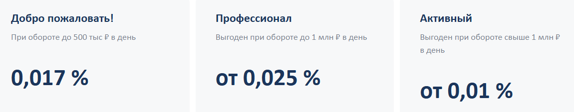 На источнике закреплен список комиссионных сборов, распространяющихся на операции согласно выбранным тарифным планам.