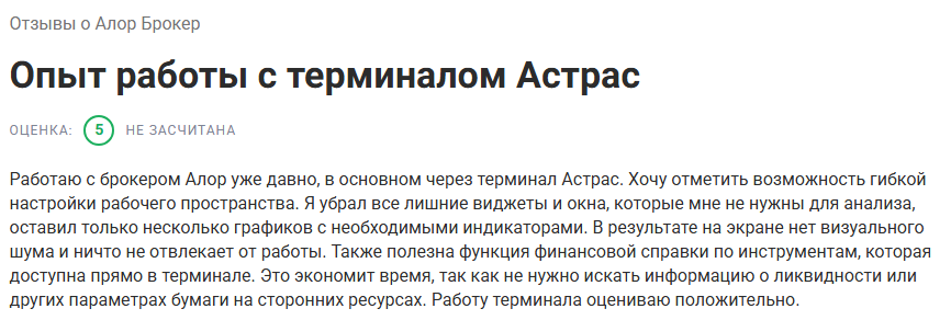 Довольный клиент «Алора» не смог ничем аргументировать свое мнение о trading платформе, поэтому его положительную оценку не зачли. В действительности бэкграунд проекта очень далек от безукоризненного, и многие пользователи обвиняют брокерскую организацию в мошенничестве.