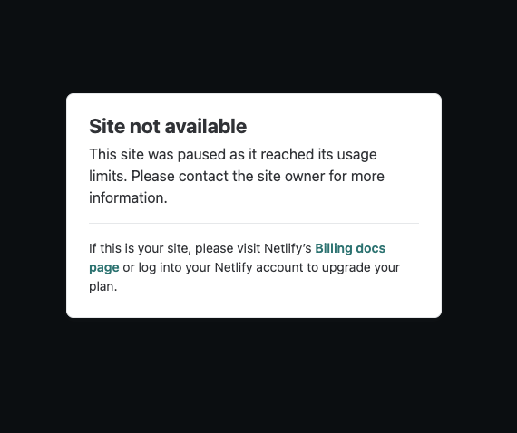 При попытке перехода на него можно увидеть, что деятельность площадки приостановлена провайдером из-за того, что превышен лимит использований сервиса:
