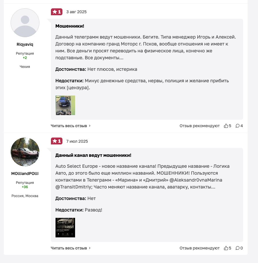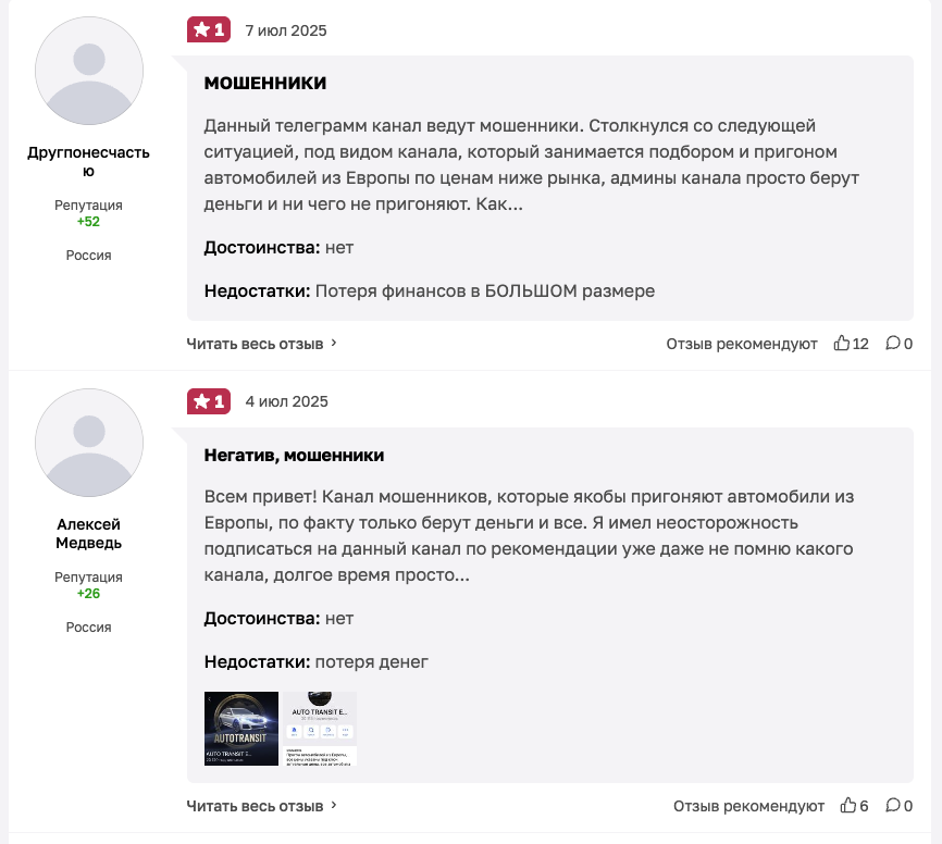 Отзывы о Телеграмм-канале Авто Транзит Европа