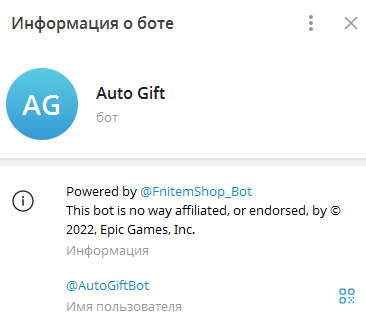 Таким образом Auto Gift Bot представляет собой просто площадку-переходник. С помощью бота «ФнитемШоп» можно отправлять телеграм-подарки и покупать их на маркете «Фортнайтс итем». Для пользования услугами роботизированного терминала необходимо подписаться на тг-канал «ФнитемШоп».
