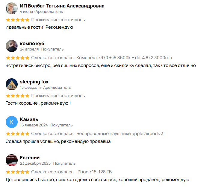 Аккаунт Автомув на Авито получил лишь 5 отзывов. При этом ни 1 из них не связан с продажей автомобилей. 2 оставили владельцы недвижимости, в которой проживали представители компании, остальные 3 отзыва касаются продажи техники с этого аккаунта.
