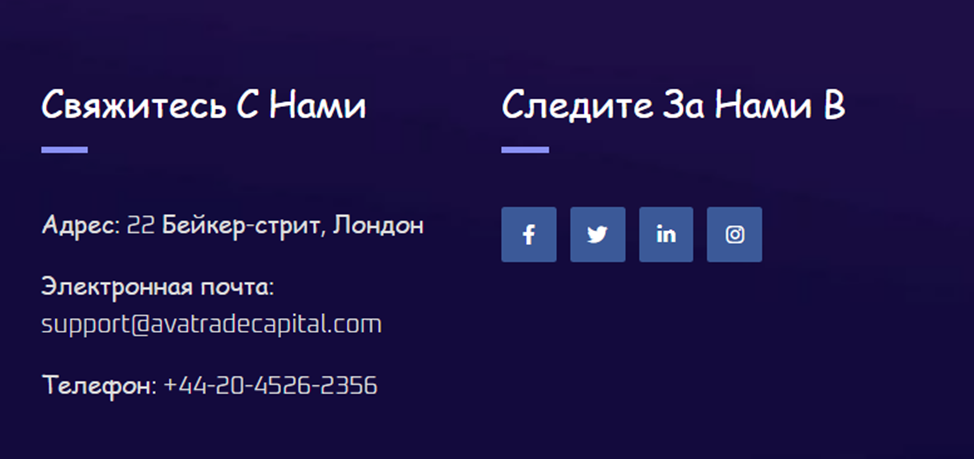 Брокер Avatradecapital Com указывает адрес офиса: 22 Бейкер-стрит, Лондон. Связаться якобы можно по электронной почте support@avatradecapital com, вот только она не существует. Еще предоставляют для связи номер телефона. Проверка также показала, что он недоступен. Единственным вариантом для связи остается онлайн-чат.