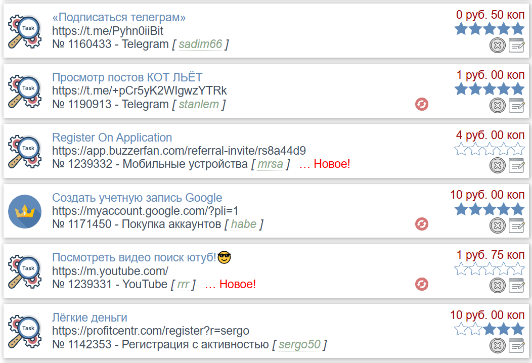 Цена за оплачиваемые задания варьируется в пределах 0,5-10 рублей. Они выполняются относительно быстро и сводятся к простейшим действиям. Для вывода денег пользователям предлагают использовать Webmoney или карты МИР. Как альтернативный способ заработка клиентам предлагают приводить рефералов на проект и получать процент от их дохода.
