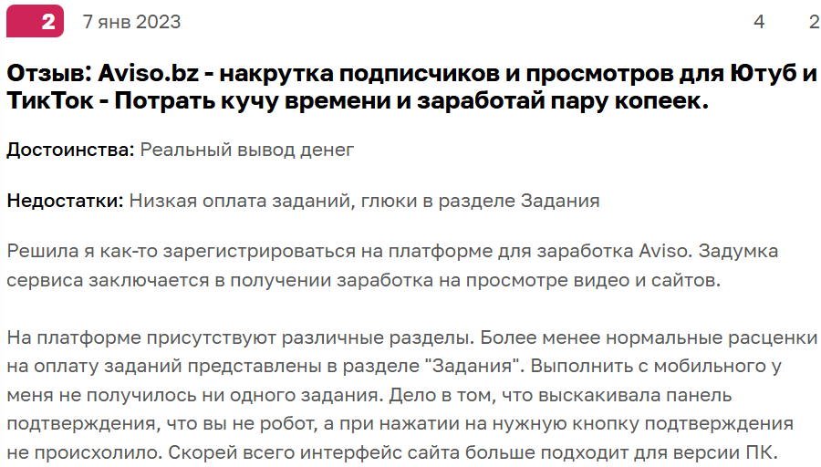 В интернете много отзывов о заработке в интернете без вложений на Aviso bz. Есть недовольные пользователи, которые жалуются на копеечную оплату за задания и технические проблемы на сайте.