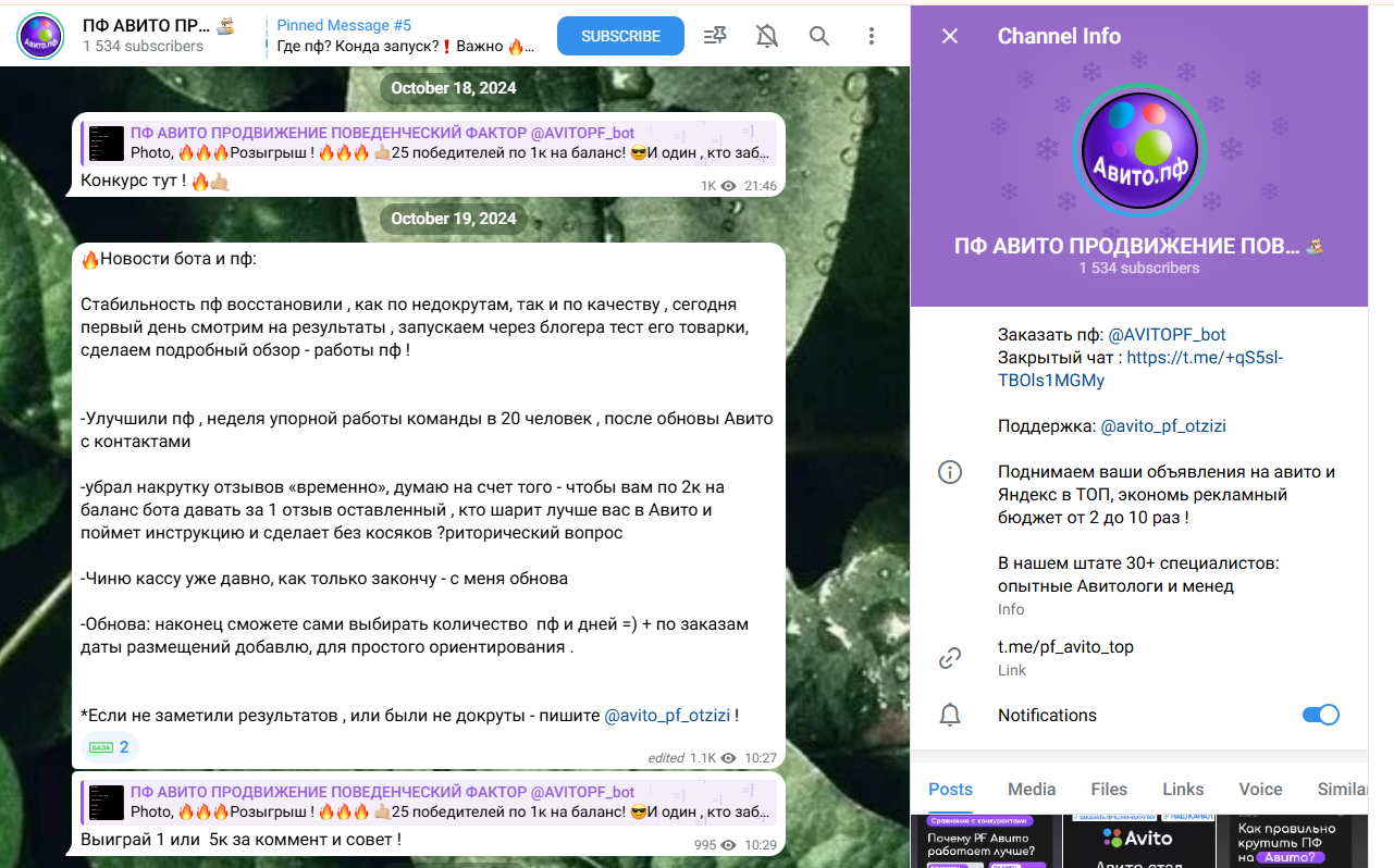 Обзор «Авито пф бота»: отзывы пользователей и анализ телеграм-канала «Авито пф поведенческий фактор»