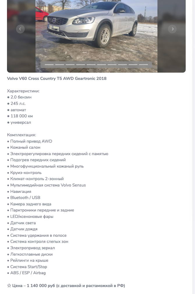 Оно вышло 25 февраля 2026 года. Автор говорит, что пригонит автомобиль в Россию, проведет растаможку всего за 1,14 миллиона рублей. Тем временем уже привезенные в РФ двухлитровые Вольво В60 стоят порядка 3 миллионов рублей.