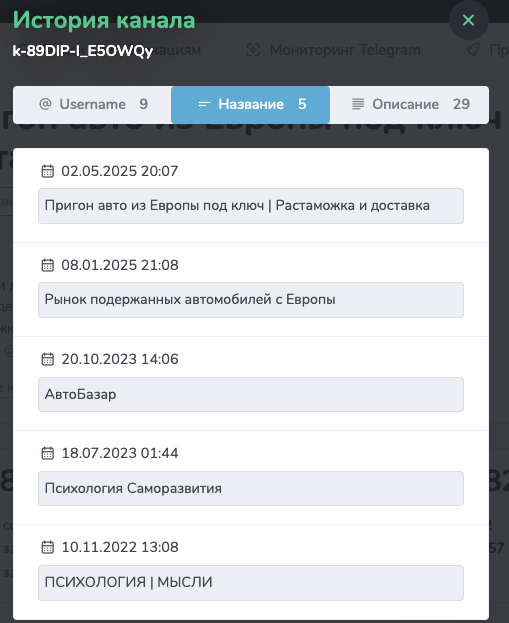 При этом юзернеймы канал менял 9 раз, название – 5, а описание — 29 раз. В первую очередь стоит обратить внимание на названия: