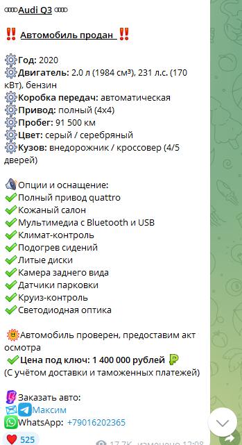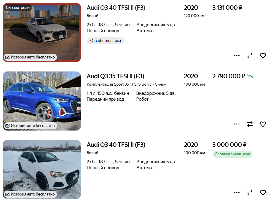 Настораживают и подозрительно низкие цены. Так, например, Audi Q3 под ключ предлагается за 1 400 000. То есть в услугу уже включены растаможка, плата перегонщику.