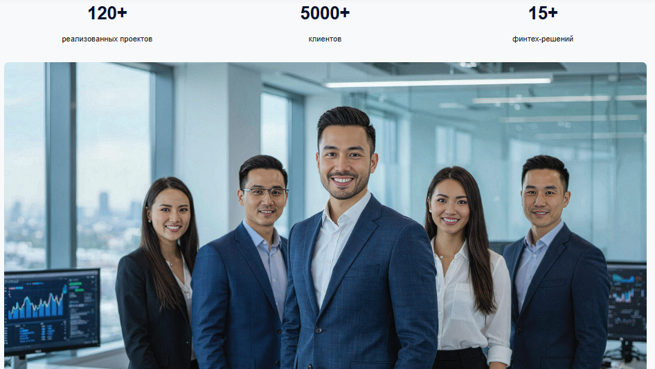 Официальные контакты указаны в виде телефона и почты (support@fintech.kz и info@fintech.kz). Также есть 4 символа соцсетей, но ссылки на них не рабочие. Приведенные цифры о более 5К клиентов не подтверждены документально.