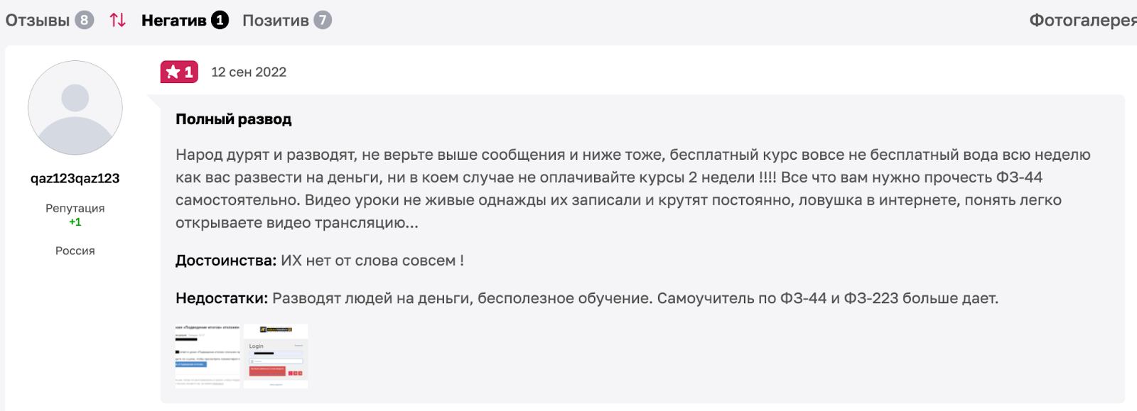 Утверждать, что все положительные отзывы реальны и непредвзяты, мы не можем. Удалось найти один негативный комментарий об онлайн-школе. Клиент пишет, что для старта в этой профессии можно просто покопаться в интернете и почитать законы. Евгений заманивает всех якобы бесплатным курсом, однако потом требует оплатить доступ к необходимым материалам.